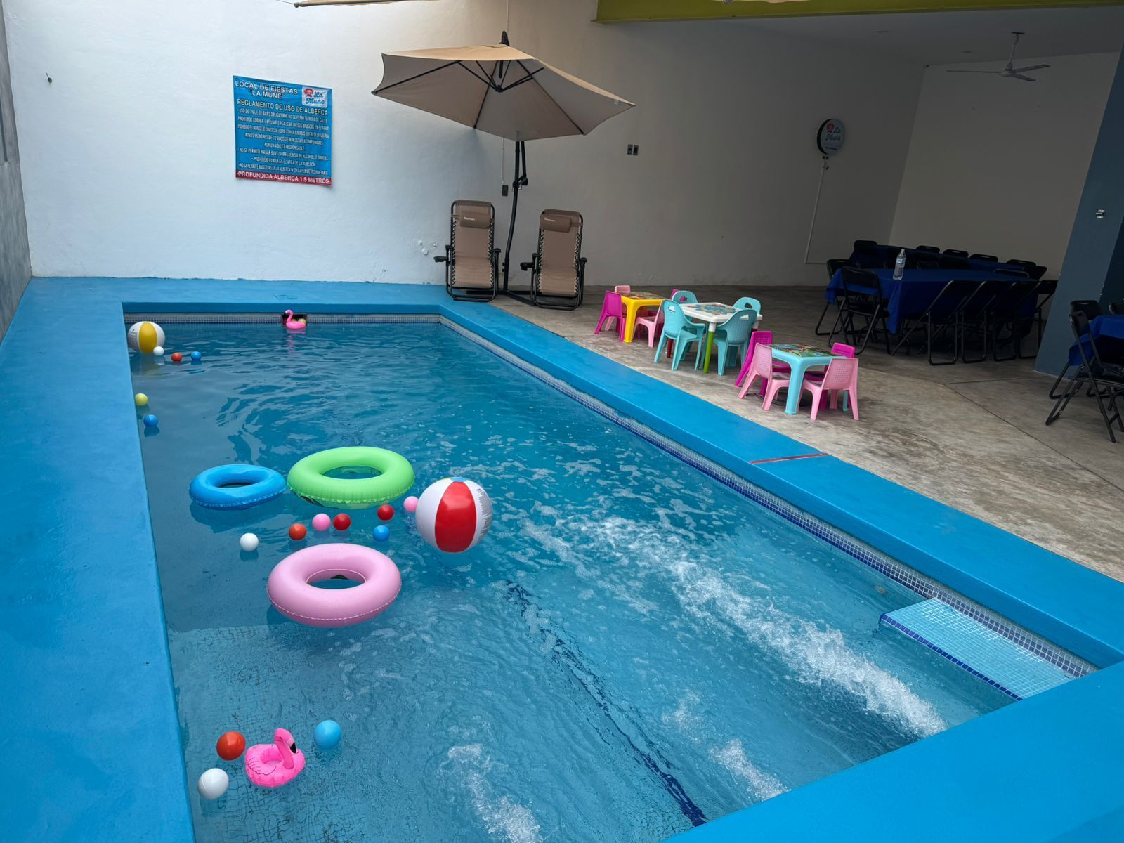 Celebra tus reuniones en nuestro salón de fiestas con capacidad para hasta 50 personas, que cuenta con alberca y todas las comodidades necesarias para disfrutar de tus eventos sociales, familiares o empresariales en un ambiente privado y relajado.