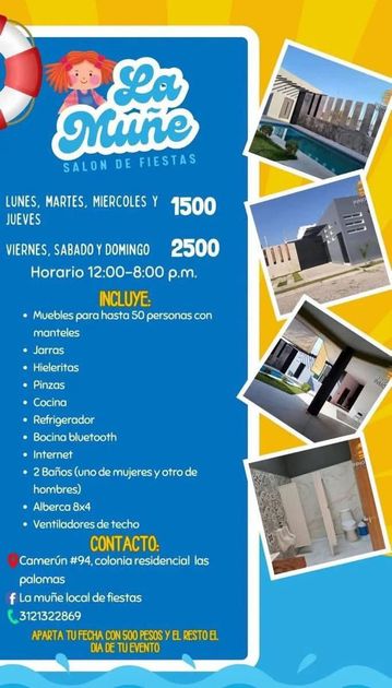 Salón de fiestas con alberca en Villa de Álvarez Colima